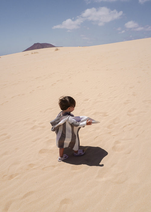 Bambusowe ponczo kąpielowe dla dzieci w brązowe pasy