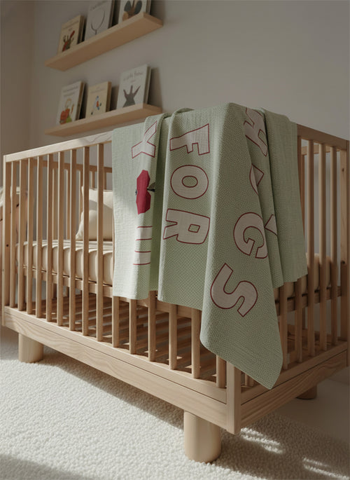 Muślinowy kocyk z bawełny dla dzieci i niemowląt z napisem 120x120 cm